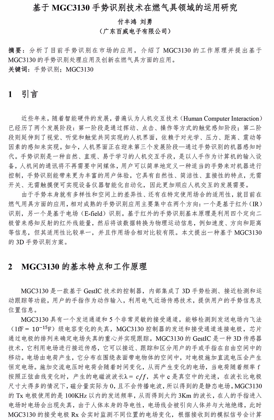 基于MGC3130的手勢識別技術在燃氣領域的運用研究